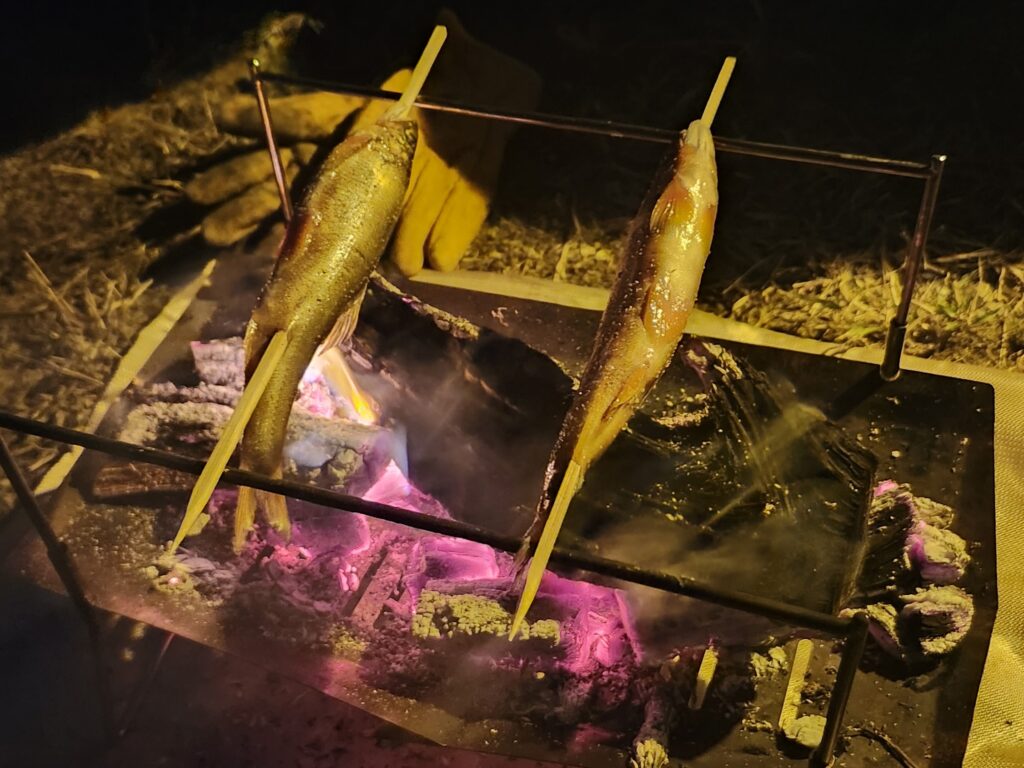 鮎を焚き火で串焼きにするという、某狩猟ゲームのような体験もできて、良い思い出になりました。